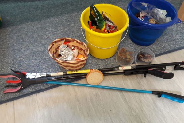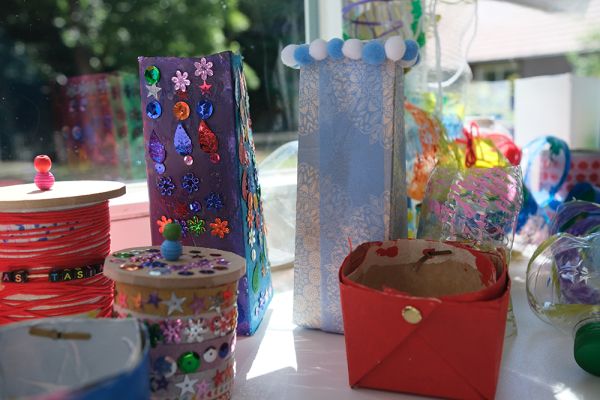 - Upcycling: Aus Müll und alten Sachen sind neue Dinge entstanden (Kunstwerke, Spiele, Murmelbahn, Deko, …)